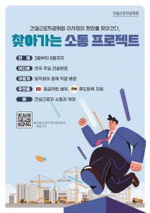 건설근로자공제회는 건설근로자의 사기 증진과 소통 강화를 위해 3월부터 8월까지 전국 주요 권역별 대규모 건설현장에서 ‘찾아가는 건설근로자 소통 및 격려 행사’를 열고 있다고 30일 밝혔다.건축공사는 공사금액 500억 원 이상, 토목공사는 공사금액 1천억 원 이상과 일일 평균 출력 인원이 300명 이상인 건설현장이 ‘찾아가는 건설근로자 소통 및 격려 행사’의 대상이다.행사지역 및 순서는 ▲호남권(3월) ▲수도권(4월~5월) ▲경남·경북(6월) ▲충남·충북(7월) ▲인천(8월) 순으로 진행되고 있다.행사내용은 건설근로자공제회 이사장과