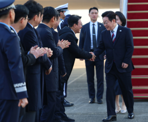이재명 대통령이 7박 10일간의 중동·아프리카 순방을 마치고 26일 오전 서울공항을 통해 귀국했다.이날 공항에는 김민석 국무총리와 윤호중 행정안전부 장관, 더불어민주당 정청래 대표와 김병기 원내대표, 강훈식 대통령 비서실장과 박윤주 외교부 1차관 등이 나와 이 대통령 부부를 맞았다.이 대통령은 김혜경 여사와 함께 전용기에서 내려 환영 인사들과 악수하며 인사를 나눴다.이 대통령은 지난 17일 출국해 아랍에미리트(UAE), 이집트, 남아프리카공화국, 튀르키예 등 4개국을 방문해 정상회담을 하고 방산·원전·문화·인공지능(AI) 등 다양한