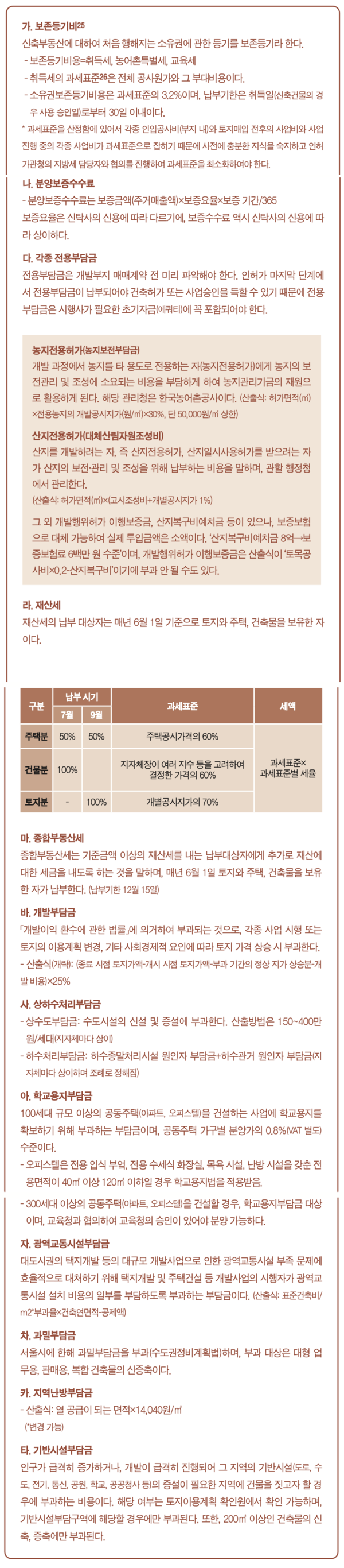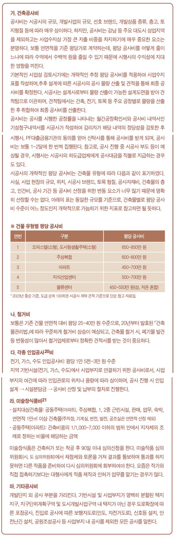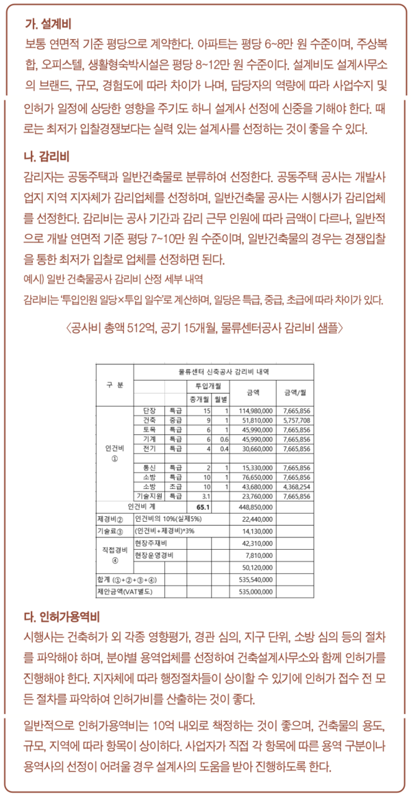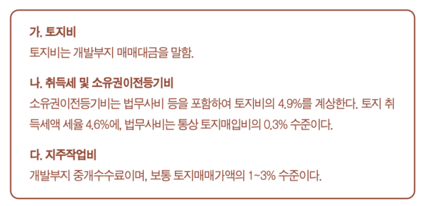 지출은 어떤 개발사업이냐에 따라 반영되는 항목이 다르고, 비용도 천차만별이어서 일반적인 중요 항목 위주로 간단히 살펴보고자 합니다.
