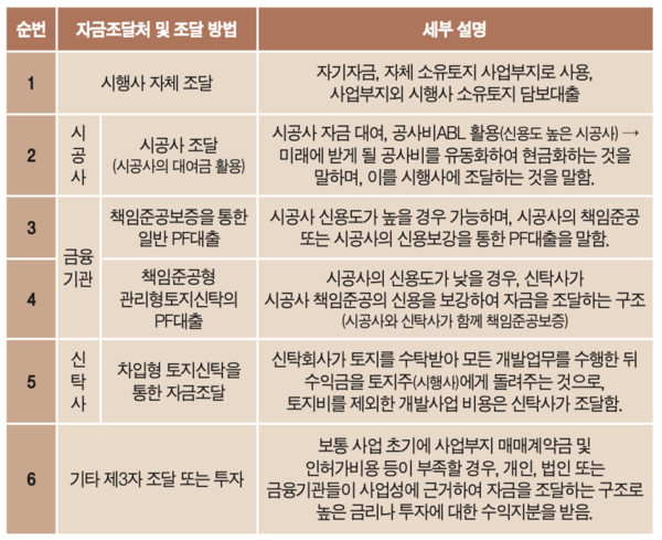 시행사의 자금조달은 상기의 내용과 같이 다양한 방법으로 가능하며, 상기 자금조달에 따른 사업 구조화는 <7단계의 사업구조화 결정 및 파트너사 선정>에서 다시 설명하겠습니다.