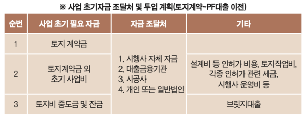 시행사 입장에서 무엇보다 중요한 것은 사업 초기자금을 누구에게서 어떻게 조달받느냐(?)일 것입니다. 개발사업 규모에 맞는 사업 초기자금이 마련되어야 개발사업의 진행이 가능하기 때문입니다.
