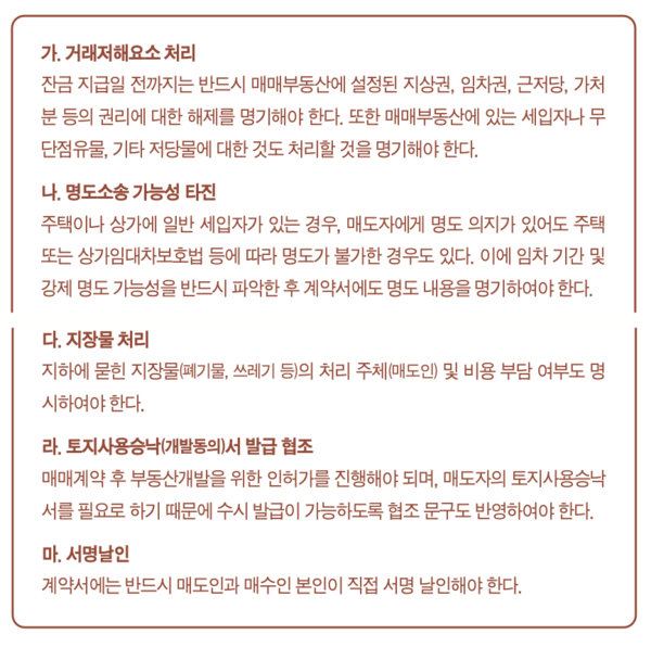 7) 매매계약 시 반영해야 되는 기타 주요 내용