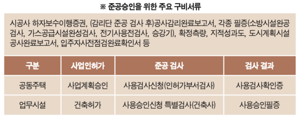 시행사는 준공 승인을 위한 허가서류 및 현장 관련 미비한 사항은 없는지 최종 확인해야 합니다.