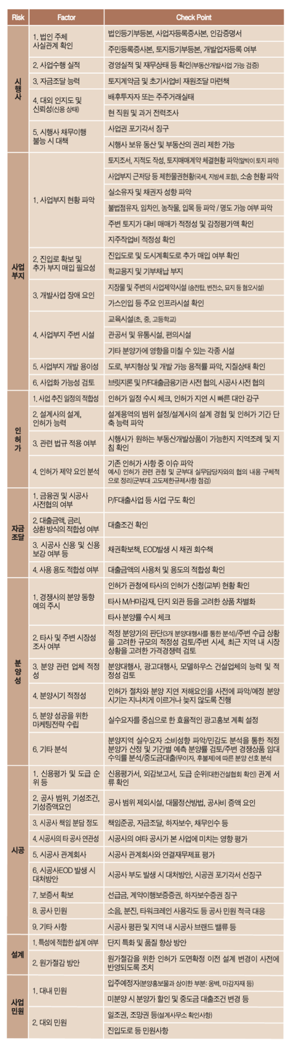 사업 정산 전, 후에도 시행사나 시공사에게 수분양자의 하자보수 민원은 꾸준히 들어오는데, 시행사는 시공사에게 최대한 빠른 하자보수 마무리를 종용해야 합니다. 자칫 하자보수가 늦어지게 되면 수분양자에게 빌미를 제공하여 소송까지 가게 되는 경우도 많기 때문입니다. 이러한 빈틈을 비집고 들어오는 하자 기획소송이 시행사의 골머리를 썩게 합니다.
