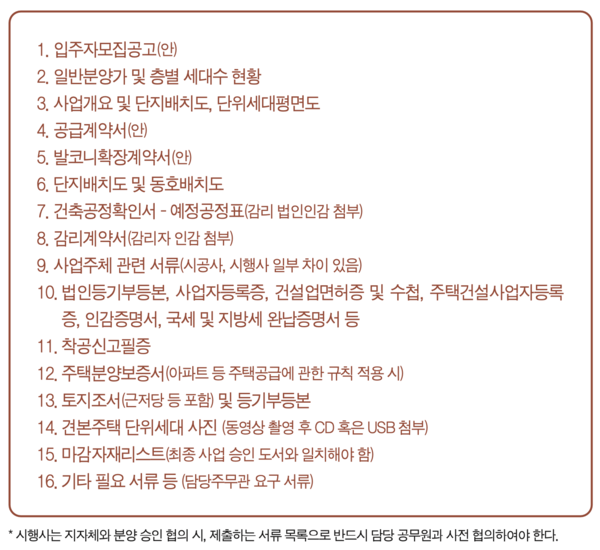 1) 입주자모집 승인(분양 신고) 신청서류부동산개발사업 체크리스트