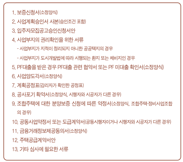2) 아파트 분양보증 시 제출하여야 하는 서류