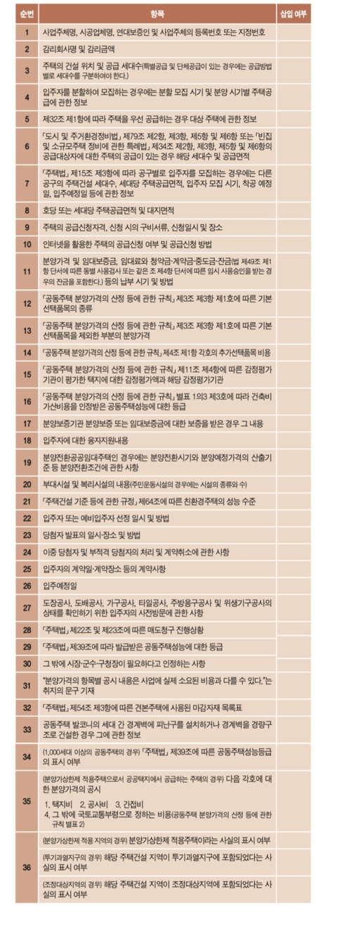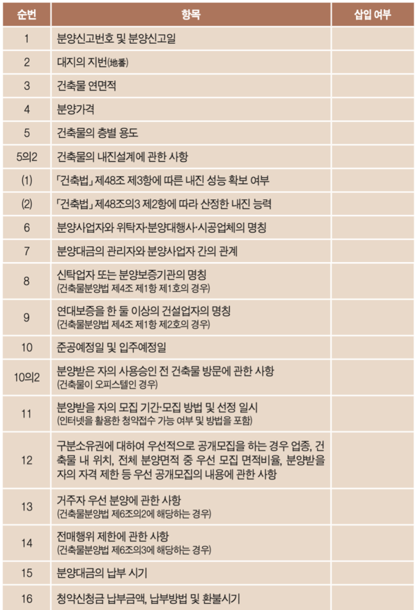 1. 입주자모집공고 체크리스트: 「건축물의 분양에 관한 법률(이하 ‘건축물