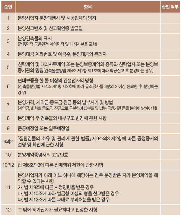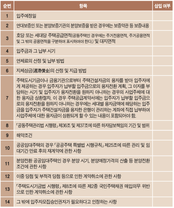 2. 공급계약서 체크리스트: 「주택법」 등에서의 필수 기재사항