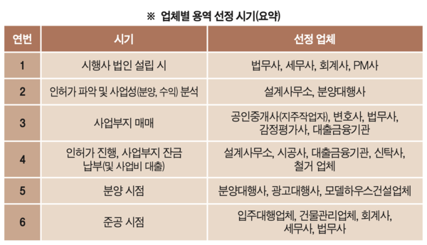 우선, 부동산개발의 능수능란한 시행사라면 토지매매계약 시점부터 미리 용역업체를 선정하는 경우도 있지만, 업체 선정을 이해하기 쉽게 부동산개발 시기별로 다음과 같이 간략하게 정리했습니다.