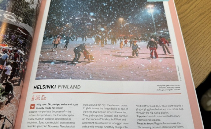 "헬싱키가 무엇이냐?"고 묻자, "핀란드의 수도"라는 답이 돌아왔고, 해당 페이지에 있는 그림을 설명해 달라고 하자, "겨울에 눈 내리는 날 사람들이 스케이트를 즐기고 있다"고 자막과 함께 음성 답변이 나왔다.