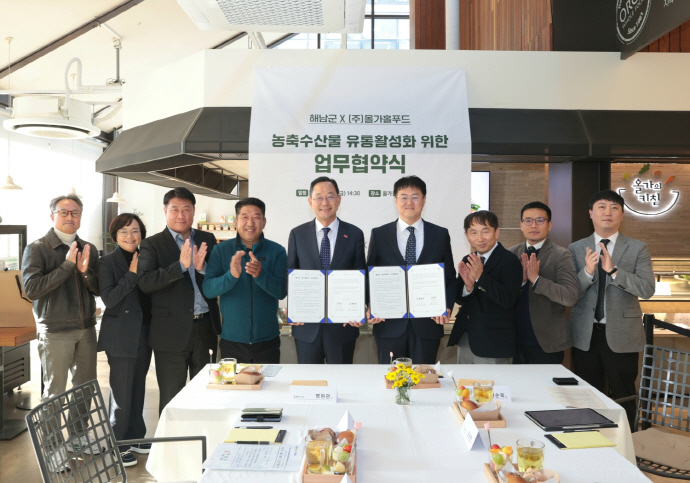 협약을 통해 해남군과 올가홀푸드에서는 농수축산물 및 가공식품의 판매 확대, 공동마케팅, 신규 유통시장 개척 등을 추진해 지속 가능한 유통협력 기반을 마련키로 했다. 협약 체결 후에는 매장 투어와 함께 김치담그기와 김장김치 100박스 나눔 전달식을 통해 상생 의미를 더했다.